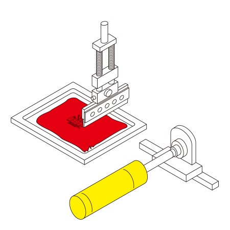 印刷の位置調整をした版にインクを盛りヘラにてインクを押出し、ノベルティを回転しながら印刷します。
