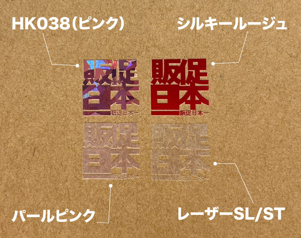 販促日本一ではゴールド・シルバー以外にも様々な種類の箔押しが可能です。