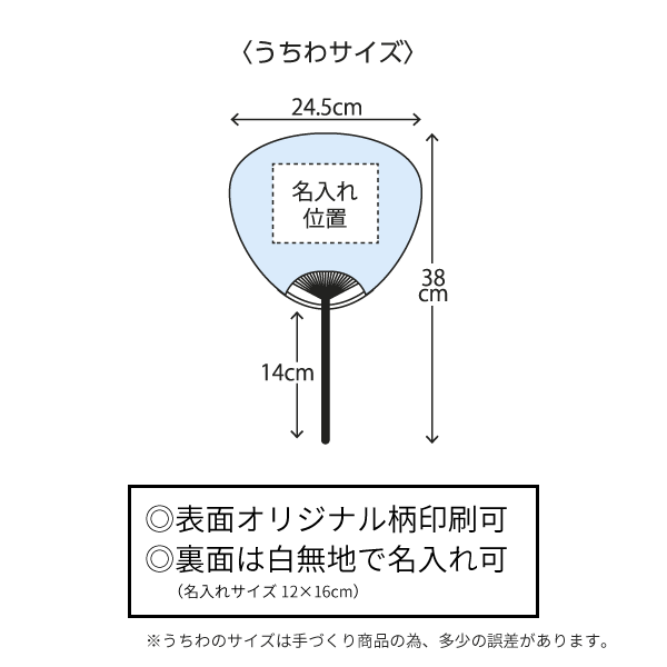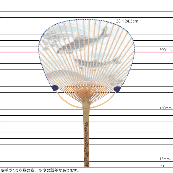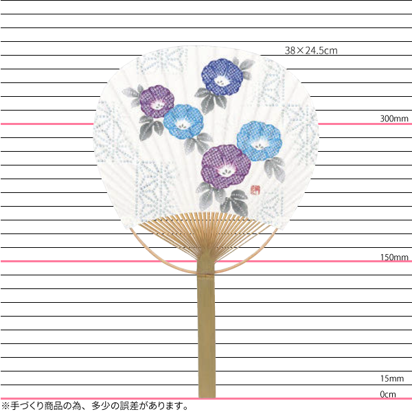 持ち手が平たい「平柄」と呼ばれるデザインの竹うちわは、次のような種類(サイズ)があります。