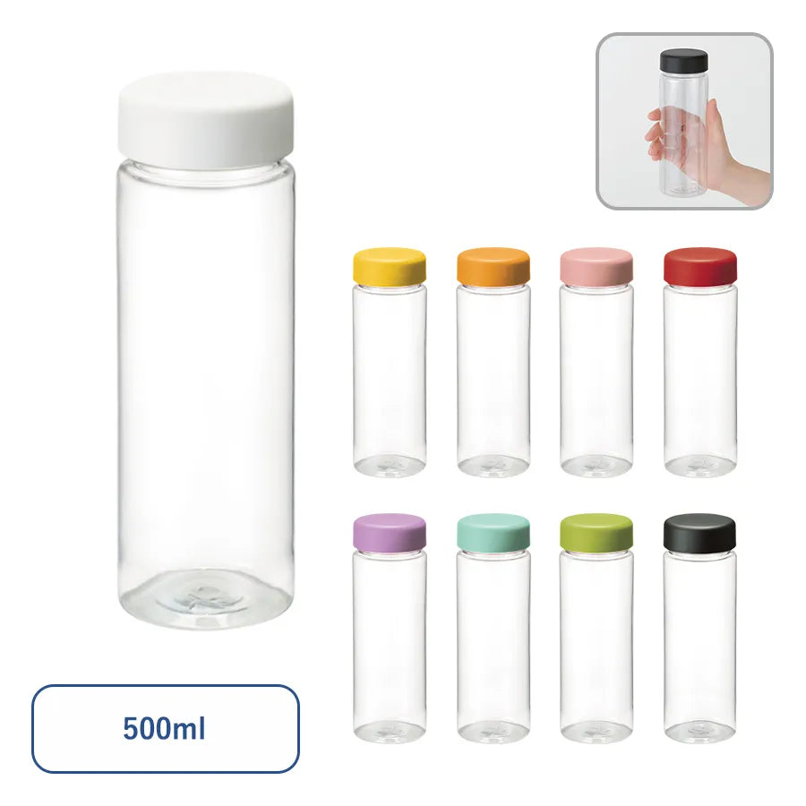 スリムなフォルムとクリア素材が特徴のボトルは、フルカラー印刷で映えるアイテム。中身が見えるデザインと相まって、オリジナルロゴやグラフィックがより印象的に。日常使いされやすく、長期的なPR効果が期待できます。