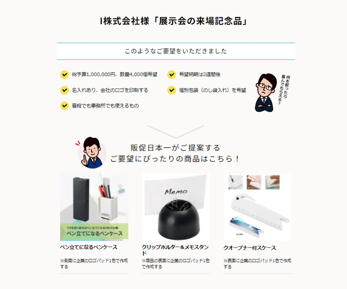 販促日本一では、お客様のお悩みに合わせ、次のようなご提案をしております。ぜひお気軽にご相談ください。