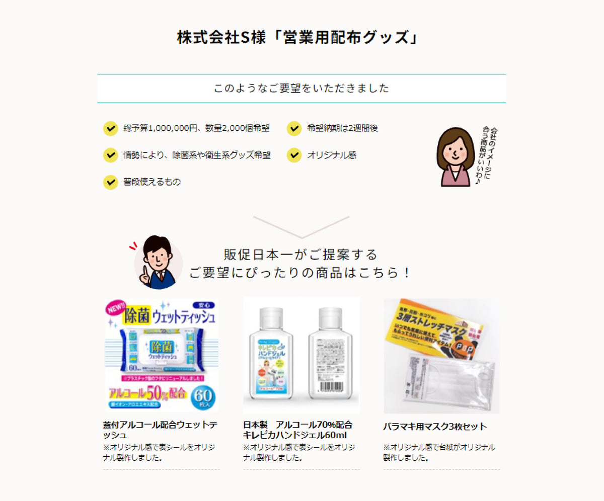 - 販促日本一オンラインサイトに掲載していない商品のご提案