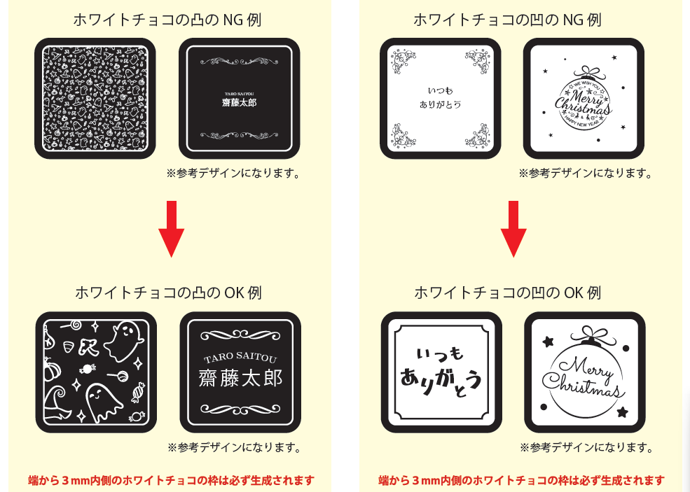 ※デザインによりホワイトチョコの凹凸ができない部分が生じます