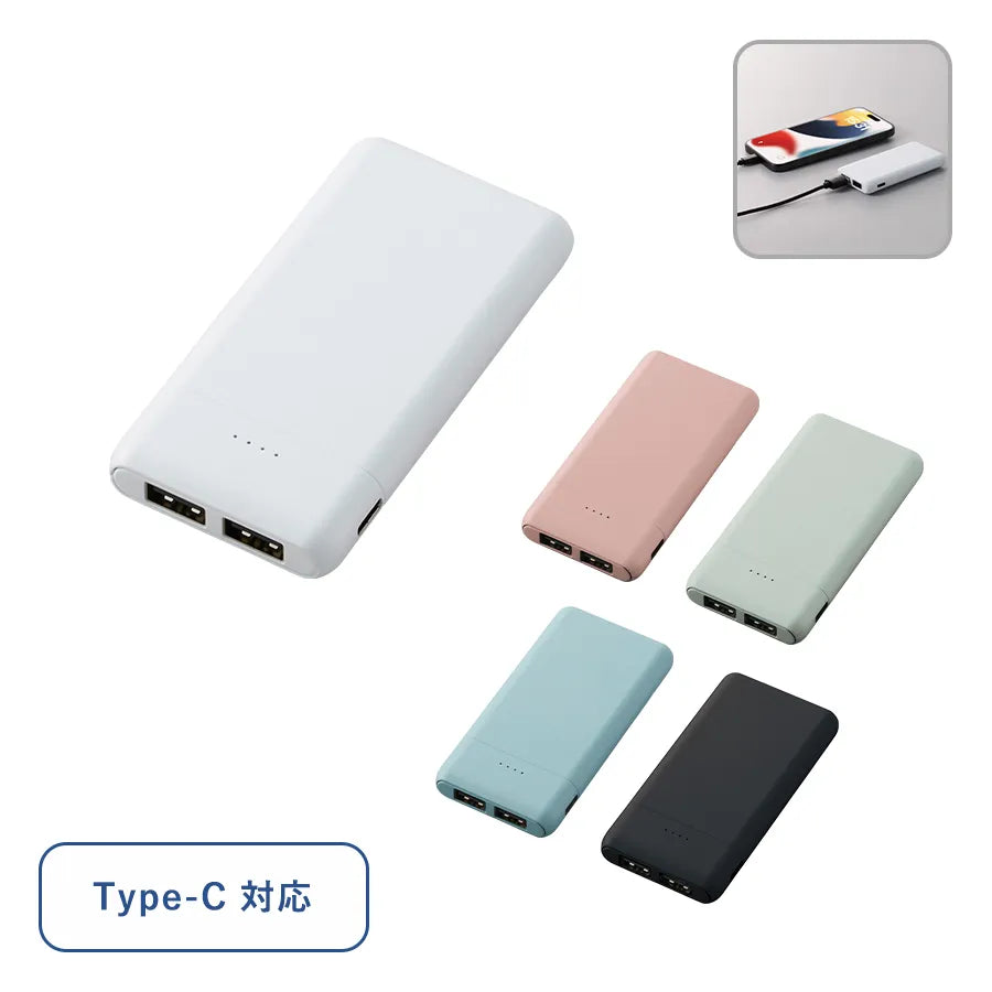 出力用ポートが2つあり、同時充電が可能。カバンに入れてもかさばらないタイプなので持ち歩きに便利です。 -
