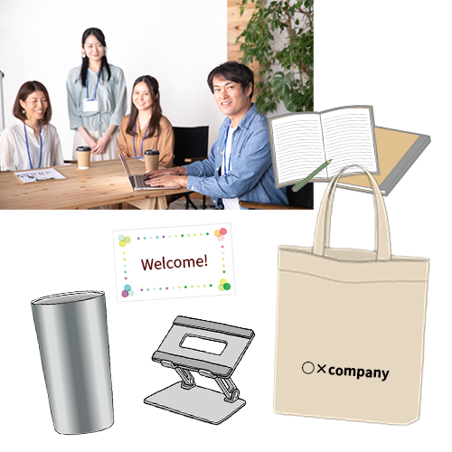 入社キット、ウェルカムギフト、オンボーディングボックス、新入社員ギフトなど、さまざまな呼び方がありますが、基本的にすべて同じものを指します。