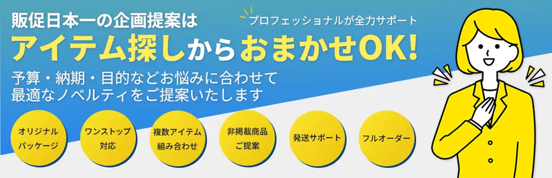企画・ターゲット・予算・納期などに合わせ、アイテムや名入れ方法、パッケージまでご提案可能です。