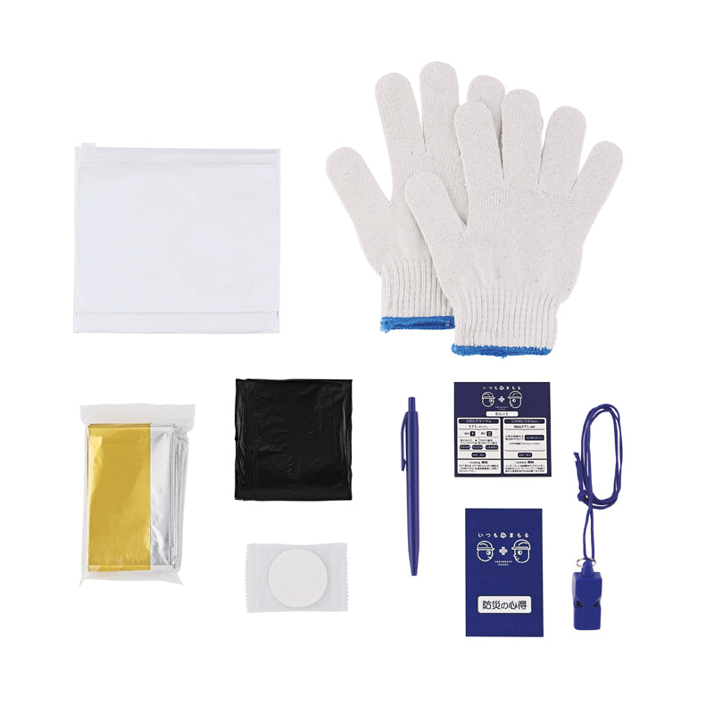 お子様やご年配の方にも持ち運びやすい、軽量&コンパクトな厳選防災アイテムをセットにしました。