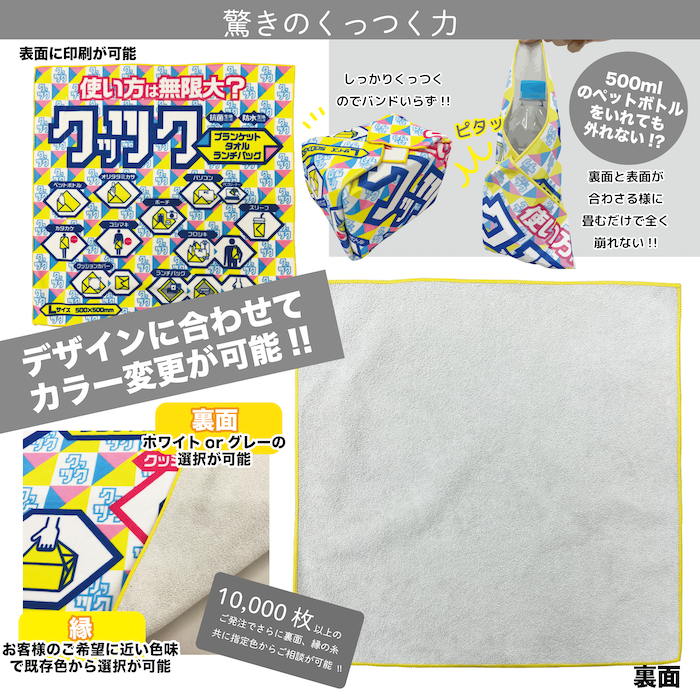 フルカラー印刷可能!ぴたっと秒でくっつく新感覚不思議なタオル