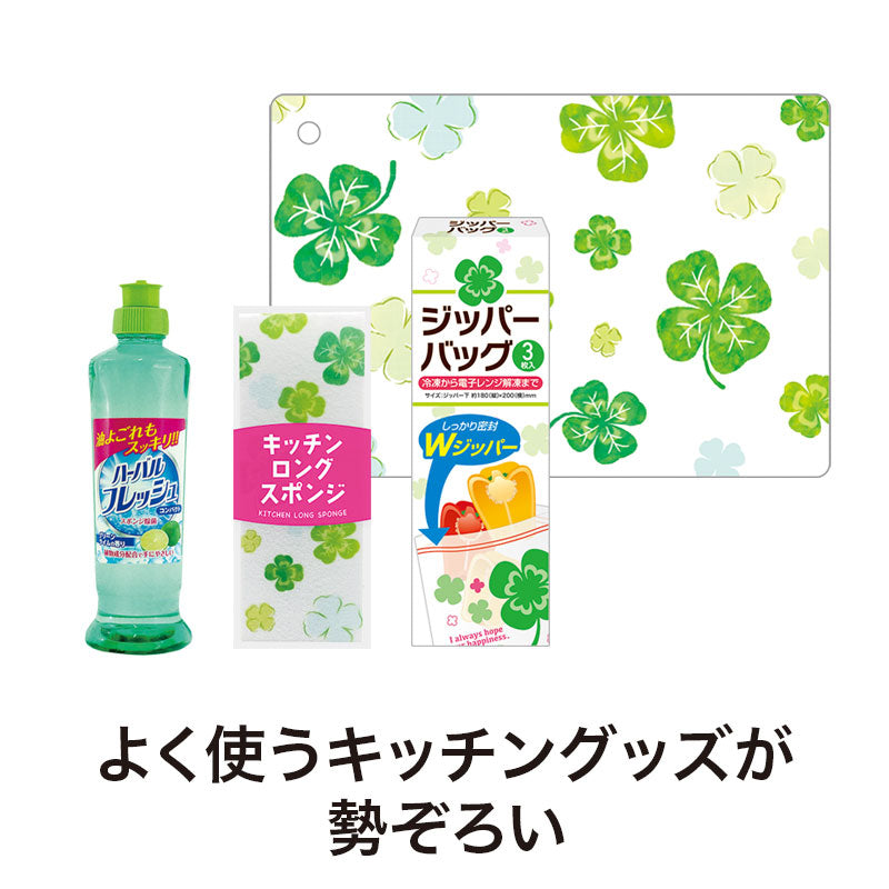 セット内容と同じく、デザインモチーフは「四つ葉のクローバー」です。