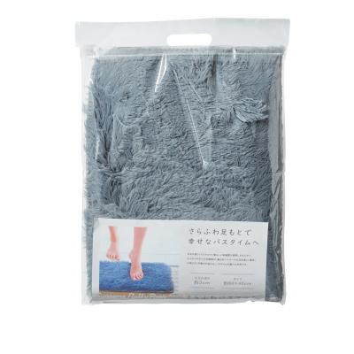 およそ3cmのふわふわな毛足が心地よさを包み込むバスマット。梱包してある状態でも質感を確かめていただけるよう、パッケージの一部が穴あき仕様になっています。裏面にはすべり止めがあり、洗濯ネットに入れて丸洗い可能でお手入れも簡単です。