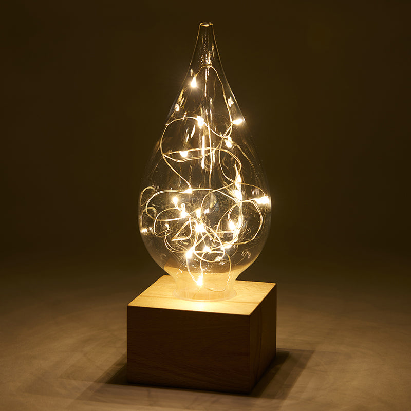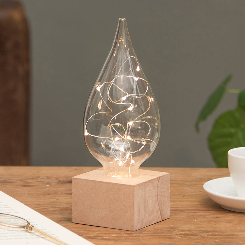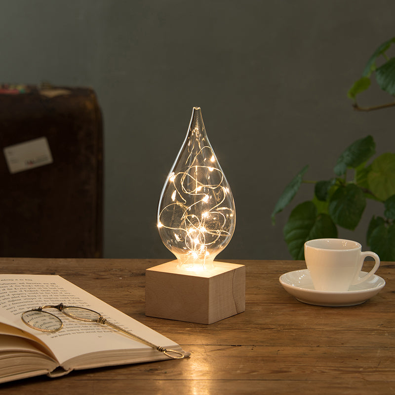 シンプルながら、お部屋のどこに置いても不思議な存在感を放つしずく型のLEDライト。