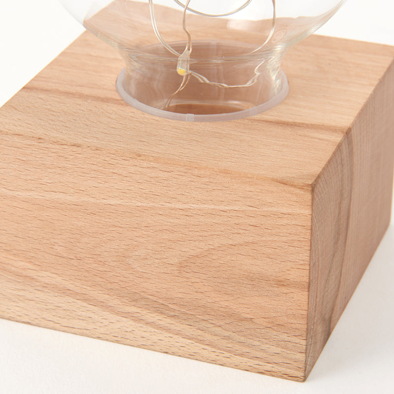 ガラスとライト、そして木という異素材の組合せが新鮮な上、過度な色やデザインを省いたデザインなので飽きることはありません。柔らかな光でリラックス、いつでもそばに置けるコードレス仕様なのも嬉しいポイントです。