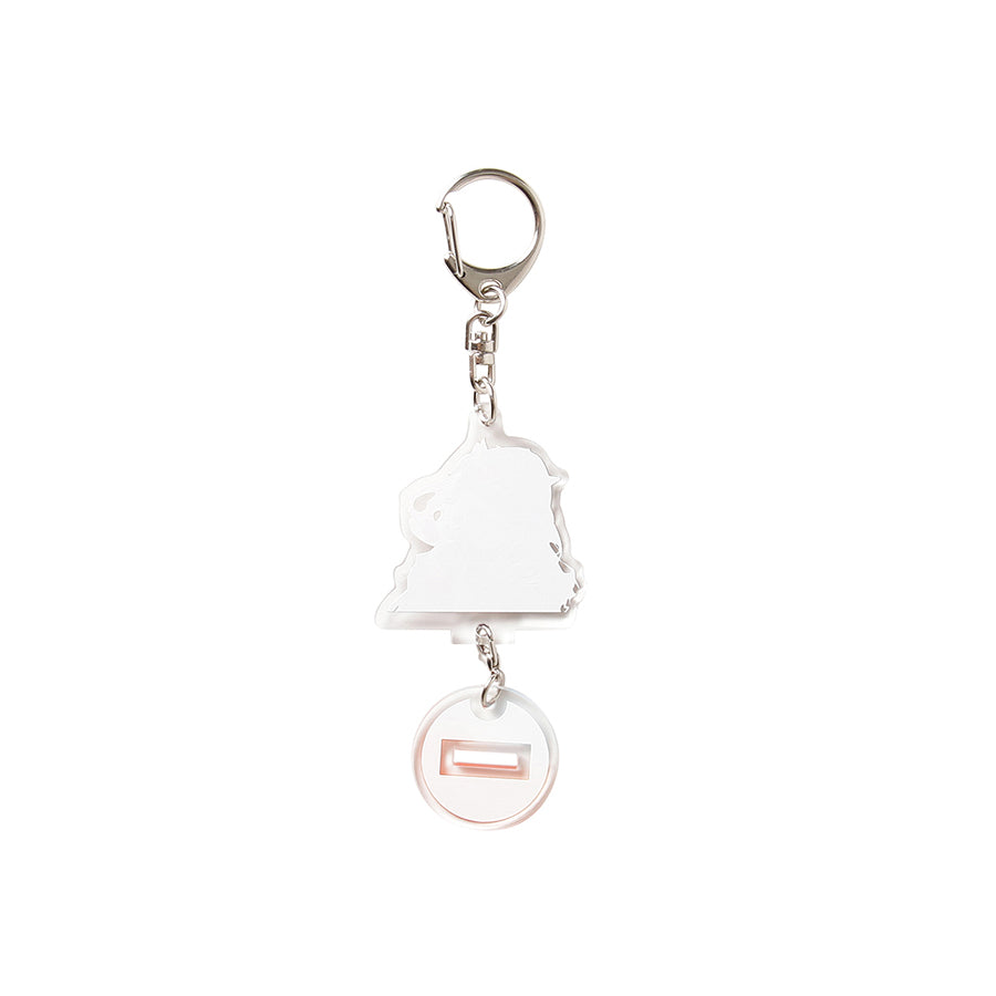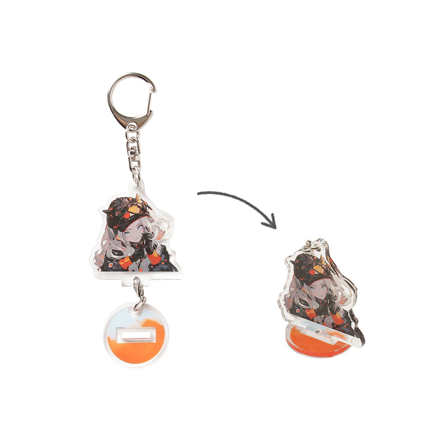 スタンドと台座を連結させて持ち運べるアクリルキーホルダーです。