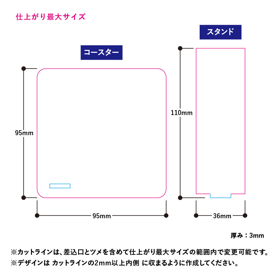 飲み物を置いてもデザインが楽しめる、アクスタが挿せるコースターです。