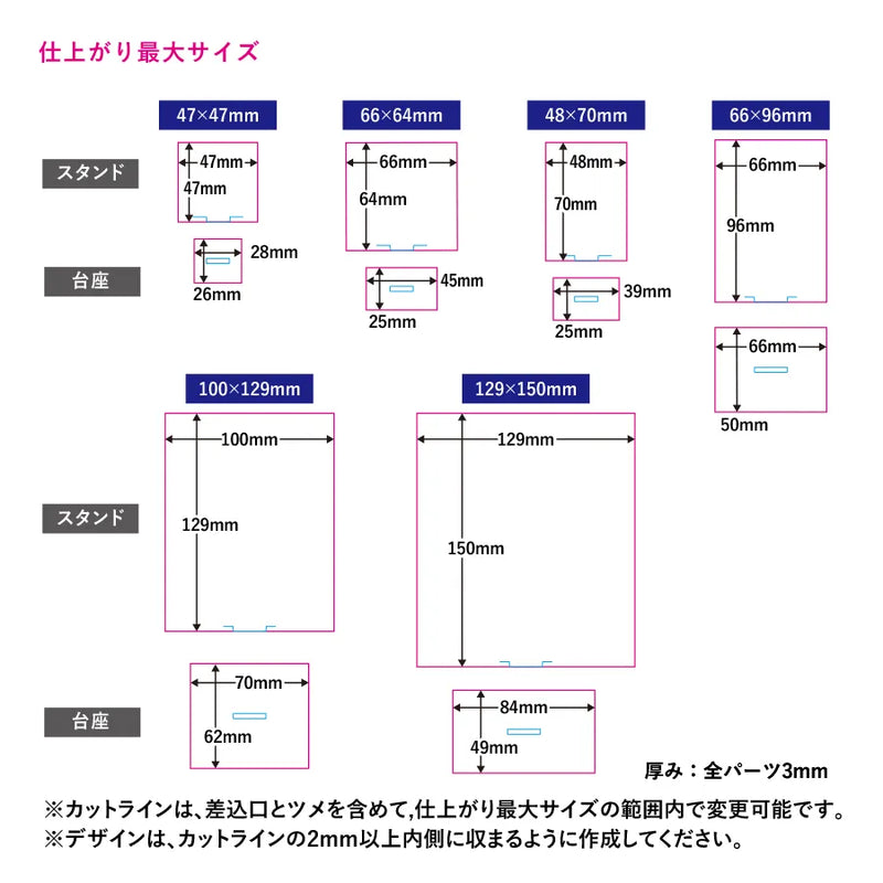 本体/W129×H150×D3(mm) 台座/W84×H49×D3(mm)