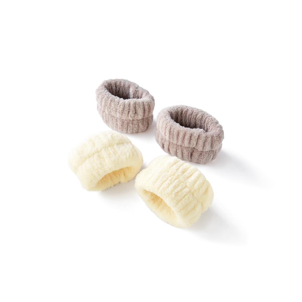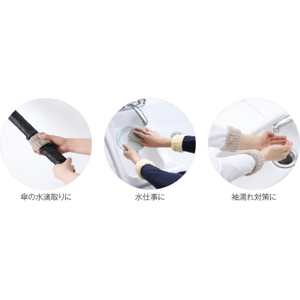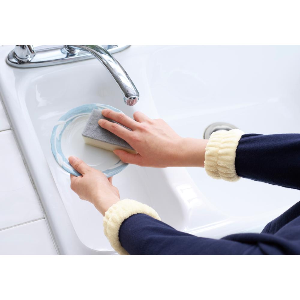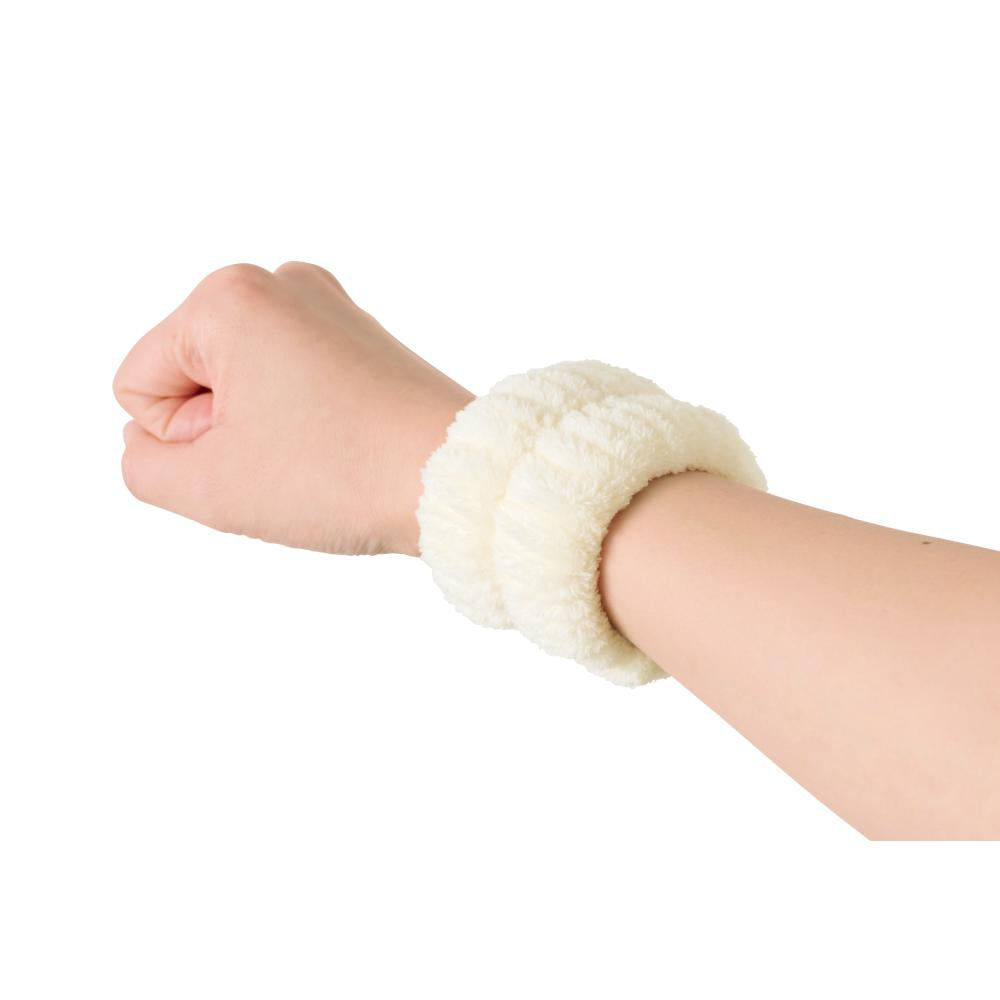 ふわふわ触感が気持ちいいリストバンド。洗顔時や洗い物をする時に、服の袖や床を濡らさずに快適に使用できます。長袖の季節には袖濡れ防止として、半袖の季節には腕濡れ防止として一年中活躍!