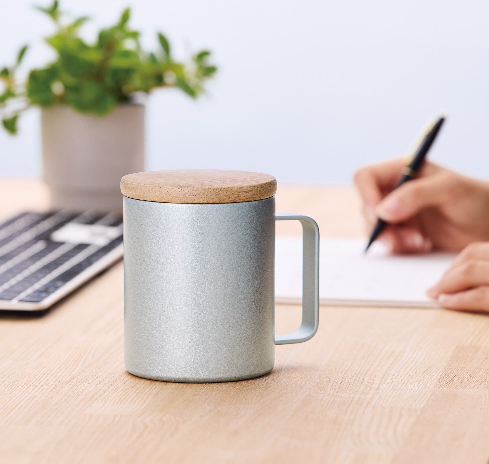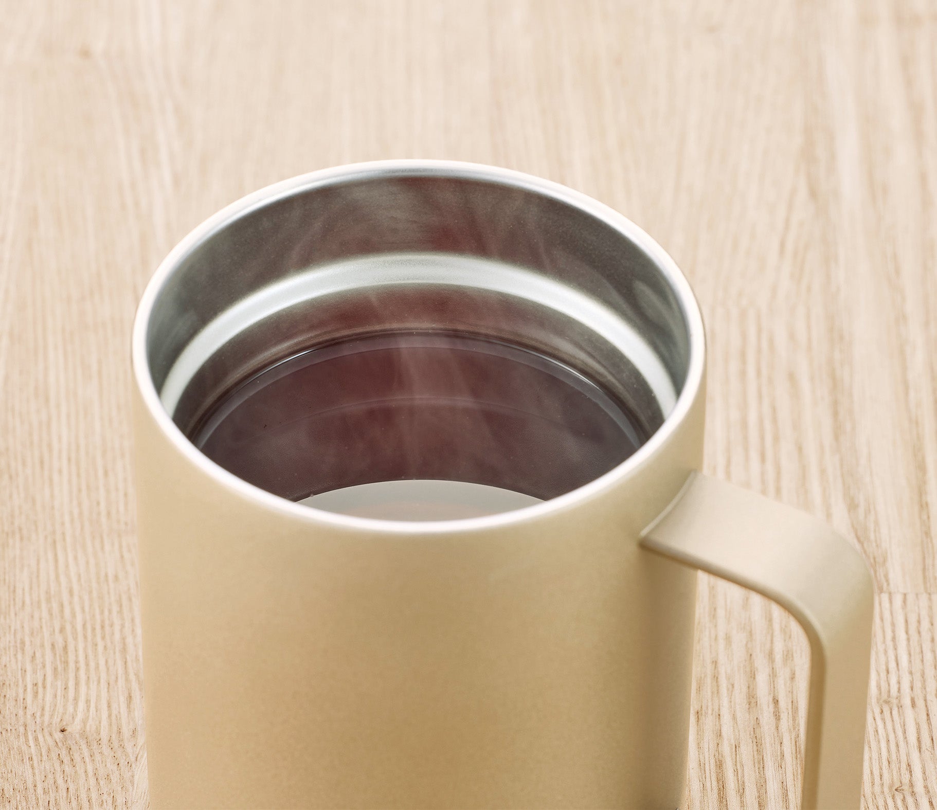 真空二重構造で、飲み物の温度をしっかりキープできる真空二重構造のステンレスマグです。キャップには天然木を使用しており、取手はしっかりと掴める幅広形状で細部までこだわったアイテムです。