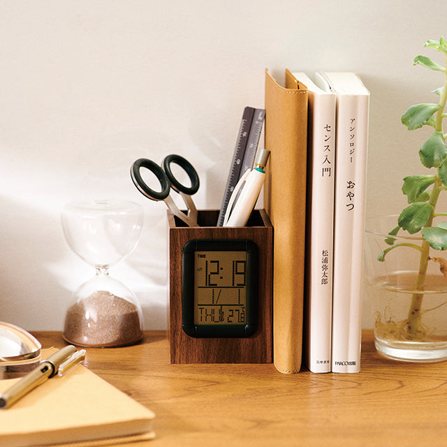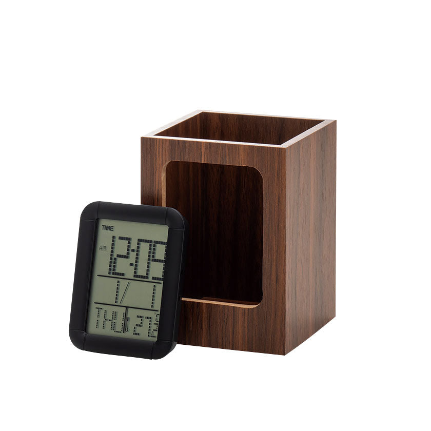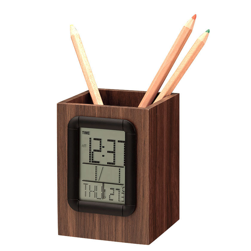 ペン立てと時計が一体になったおしゃれなウッド調ペンスタンドクロック!