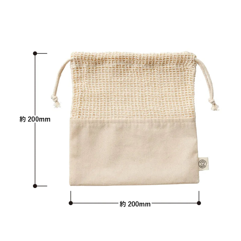 全ての生地にオーガニックコットンを使用したネットタイプの巾着です