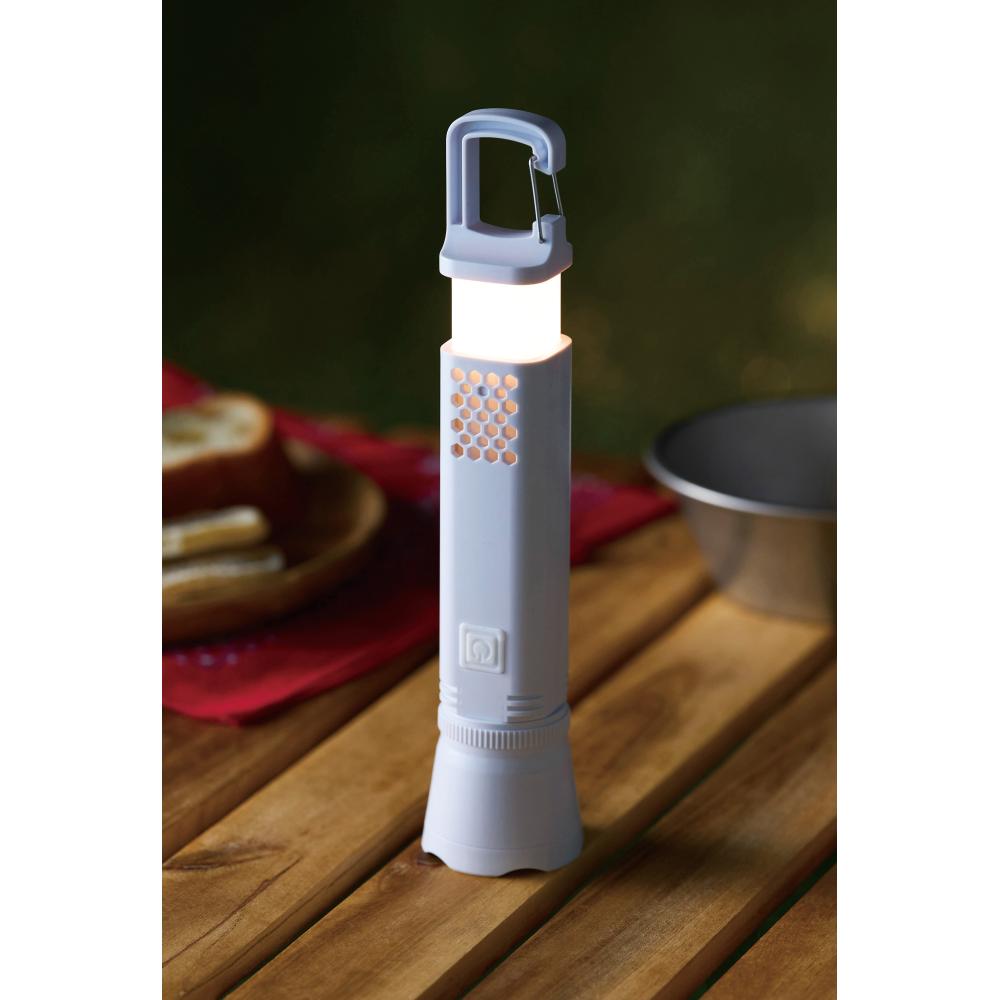本体を伸ばせばランタンとして使用可能。ヘッド部分を伸縮させればスポットからワイドまで点灯できます。