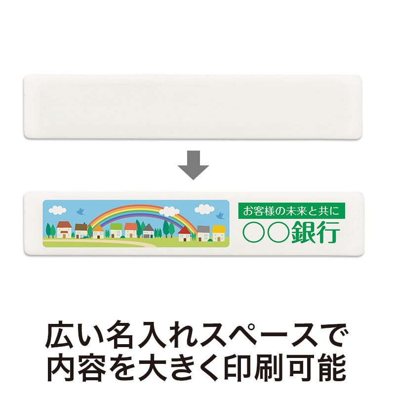 ワイドサイズなので名入れ面積も広く、会社名や電話番号等の情報をしっかり印字できます。