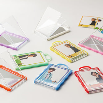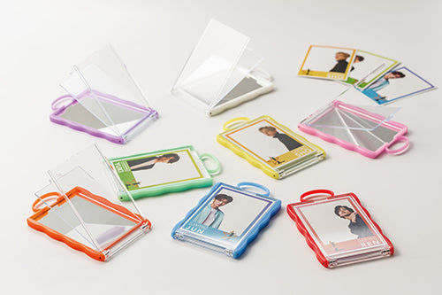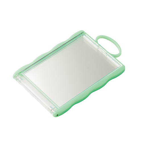 お気に入りのカードを入れて持ち運べるコンパクトミラー。バッグなどに付けられるループ付き。全8色展開です。