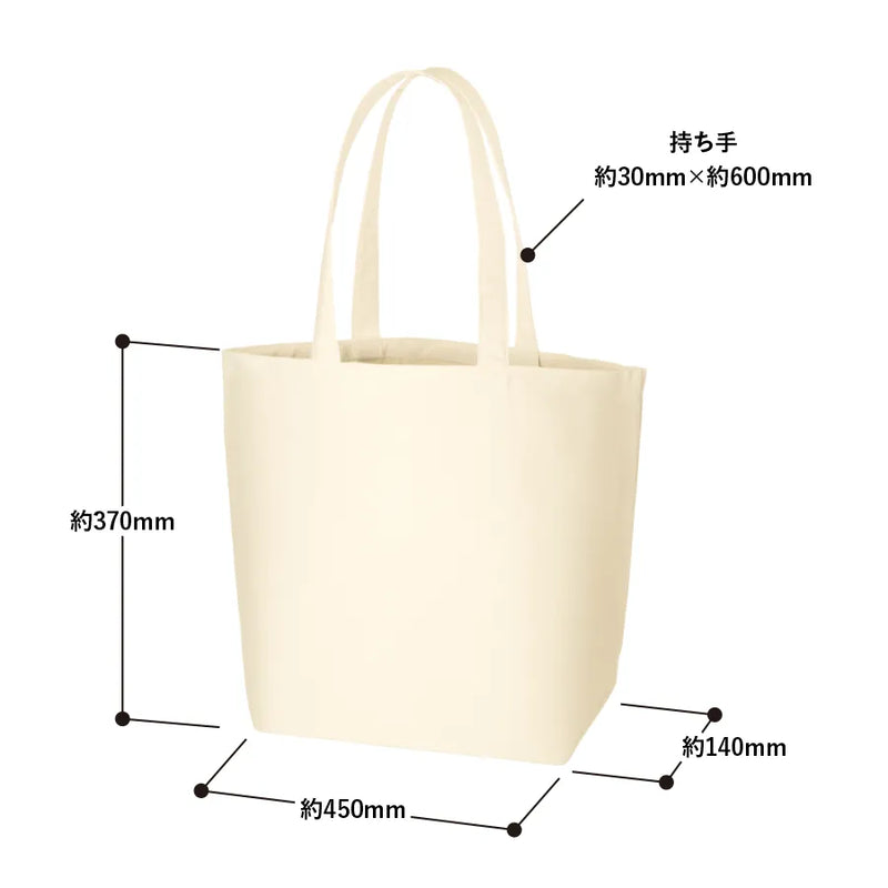 A3サイズも余裕を持って入れられるコットン生地のトートバッグです。イベントやアウトドアレジャーにも使えるサイズと広めのマチが魅力的です。印刷方法も単色からフルカラー印刷まで対応しており、お好みのデザインでオリジナルトートバッグを作成出来ます。販路としても幅広いものがありノベルティや物販など、幅広い用途にご利用いただけます。ワンサイズ小さいものでMLサイズがございます。※エコマーク付