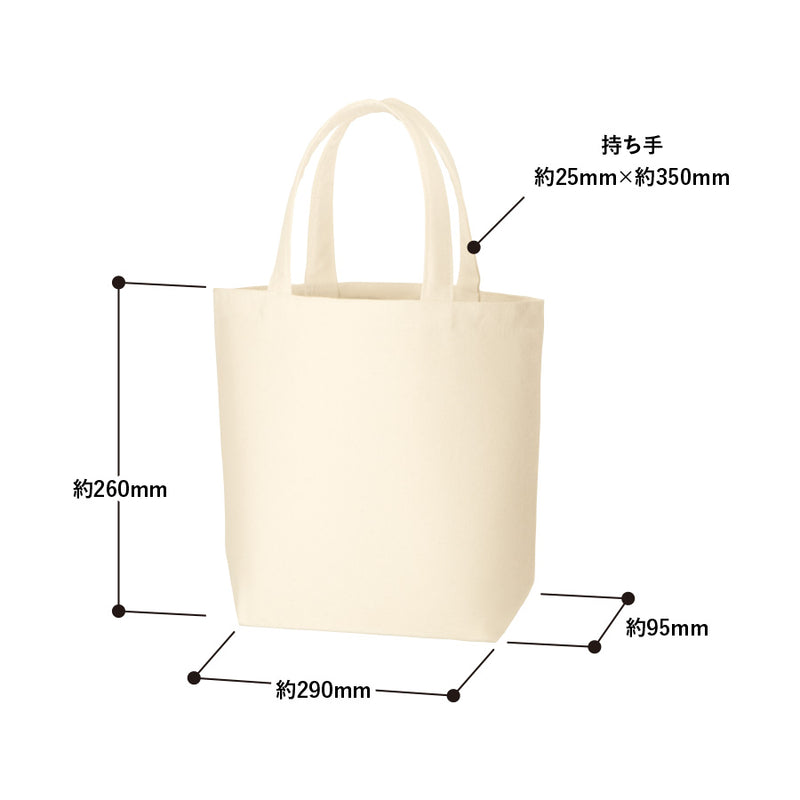 厚みのあるコットン生地のトートバッグです。ペットボトルが縦にキレイに入るサイズ感で、デイリーユースのトートとしてご利用いただけます。縦よりも横幅が広いタイプのバッグをお探しの方にもおすすめです。印刷方法も単色からフルカラー印刷まで対応しており、お好みのデザインでオリジナルトートバッグを作成出来ます。販路としても幅広いものがありノベルティや物販など、幅広い用途にご利用いただけます。※エコマーク付