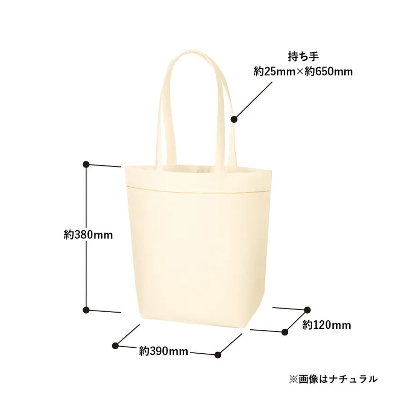 口元のラインがポイントな、使いやすく丈夫な10オンスコットン生地のデザイントートバッグです。12オンス生地のキャンバストートMよりも横幅と高さが少し大きくデザイン性も備えている為、定番トートとは一味別の提案が出来ます。