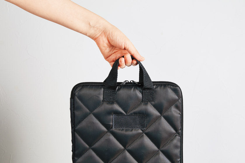 キルティング生地を使用したモバイルバッグ。