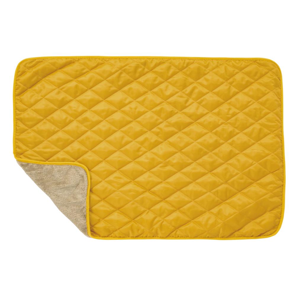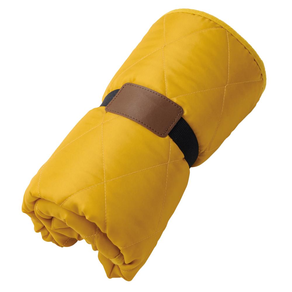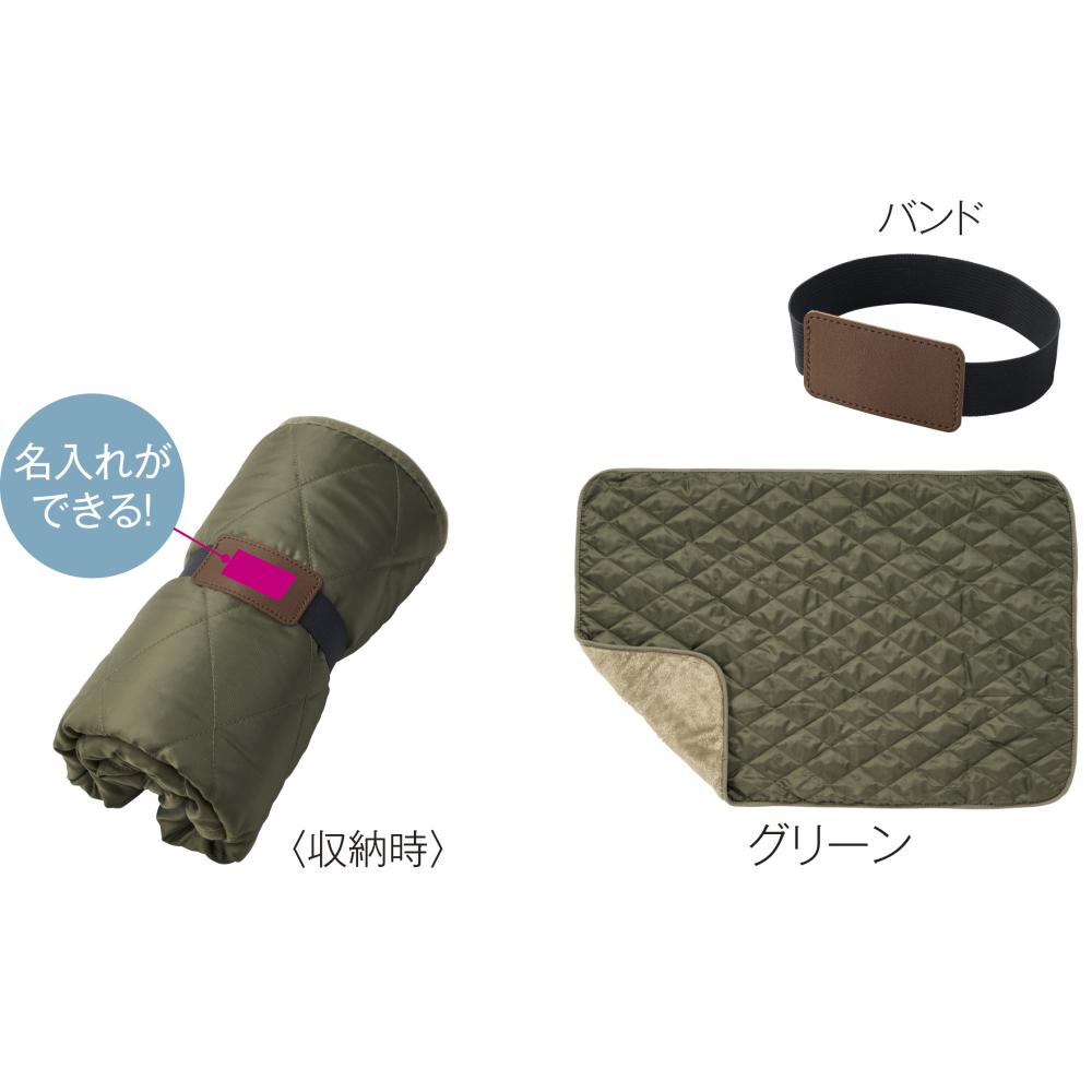 くるっとまとめておけるゴムバンドには名入れができるスペースがあります。大人でもゆったり使える大判サイズです。室内でも屋外でもなじむマスタード調のイエローとカーキ調のグリーンの2色アソート。