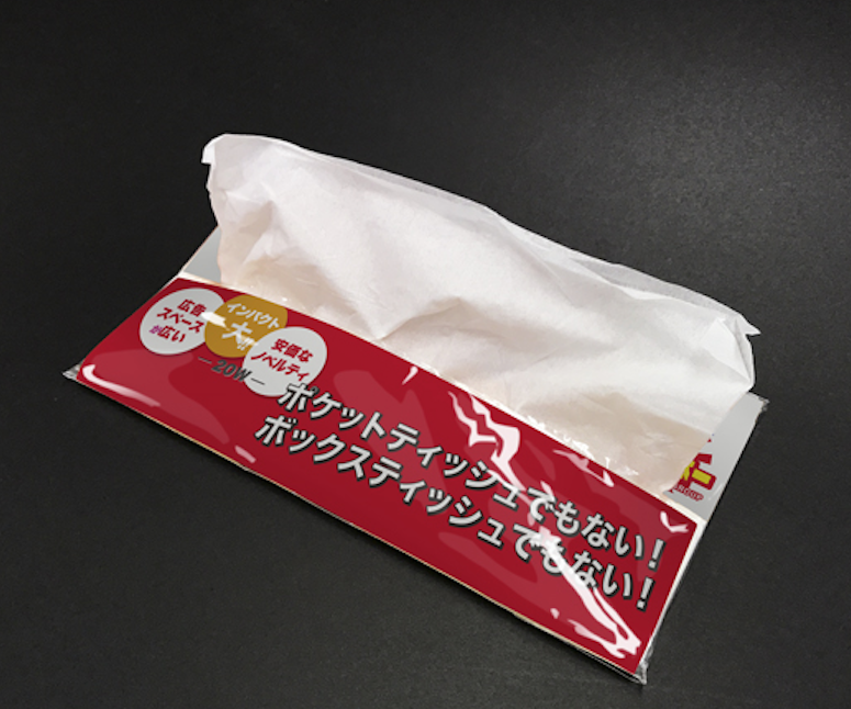 ポケットティッシュでもない、ボックスティッシュでもない、珍しいサイズのギガティッシュです。