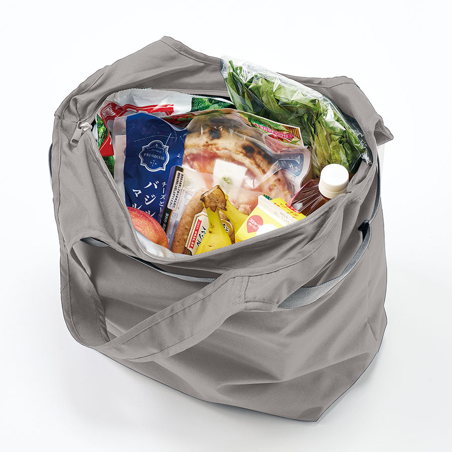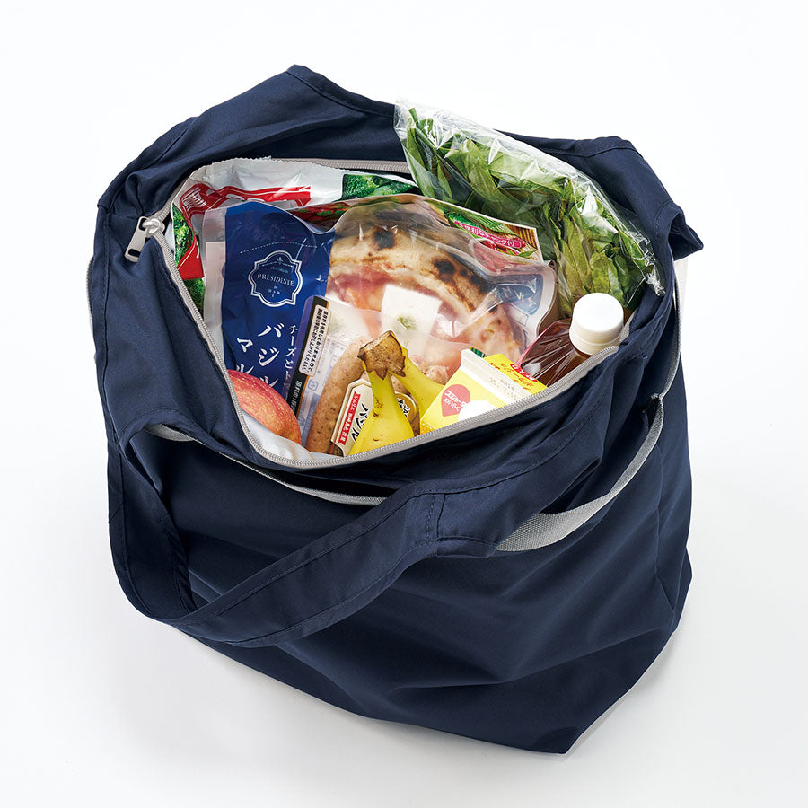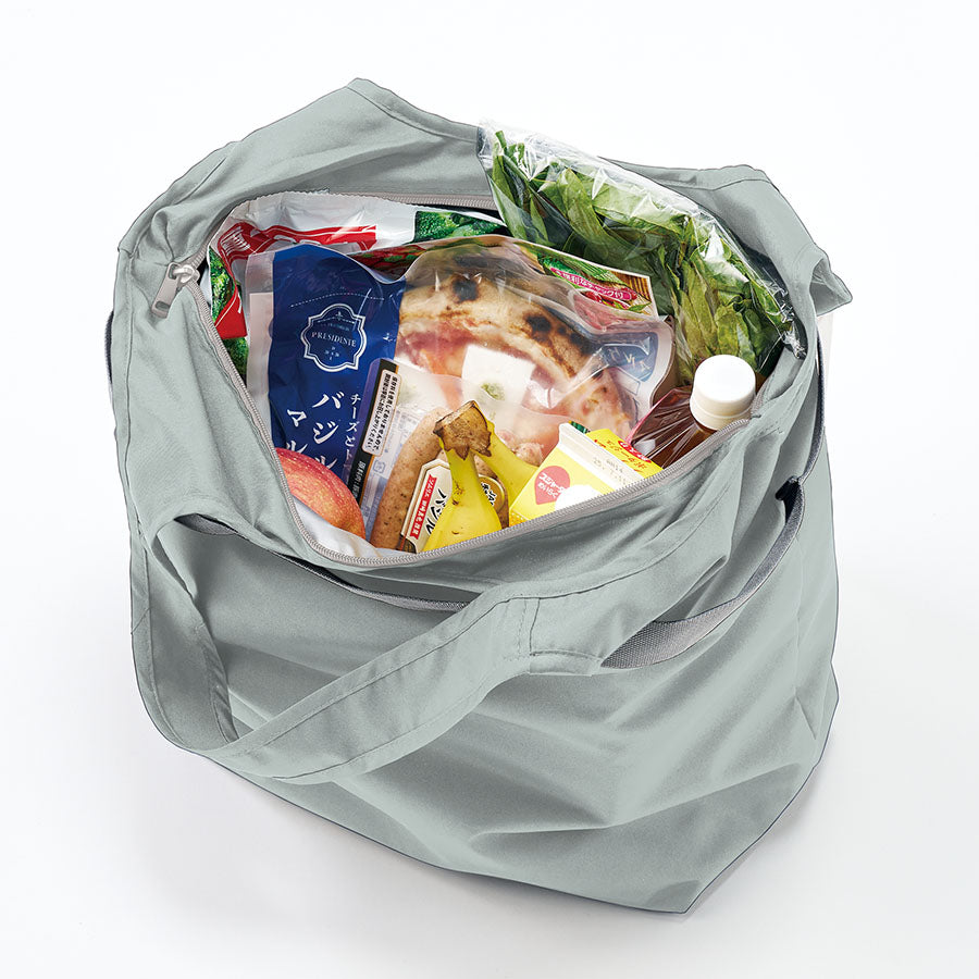 セルフレジで使いやすい便利な保冷バッグ。ゴムでコンパクトに折りたたみでき、かさばらず持ち歩けます。