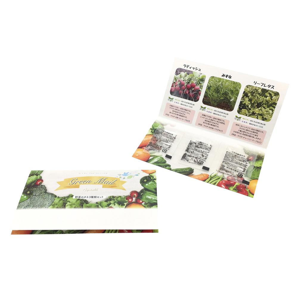 野菜は3種類(ラディッシュ、みずな、リーフレタス)の野菜の種子セット。