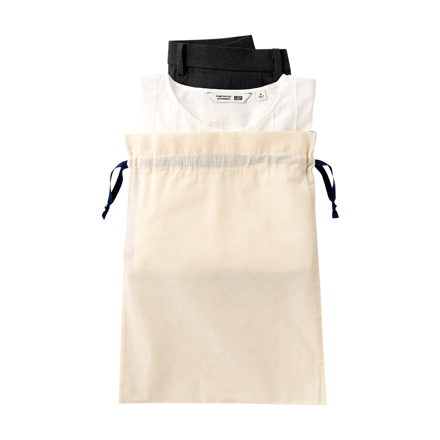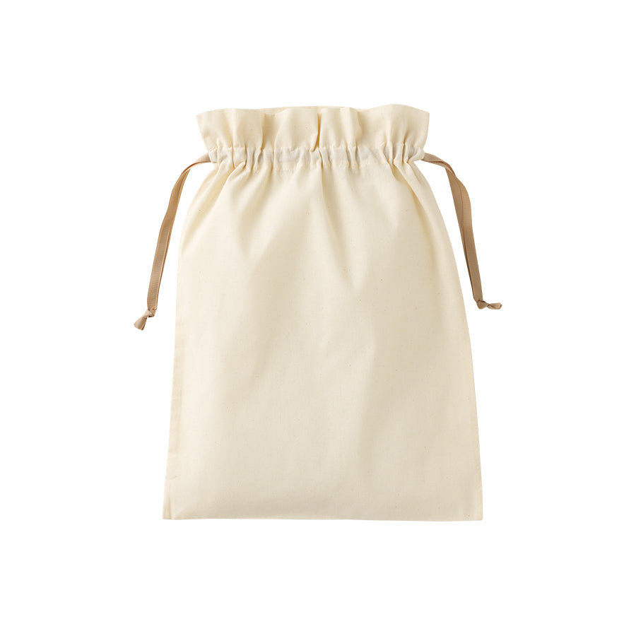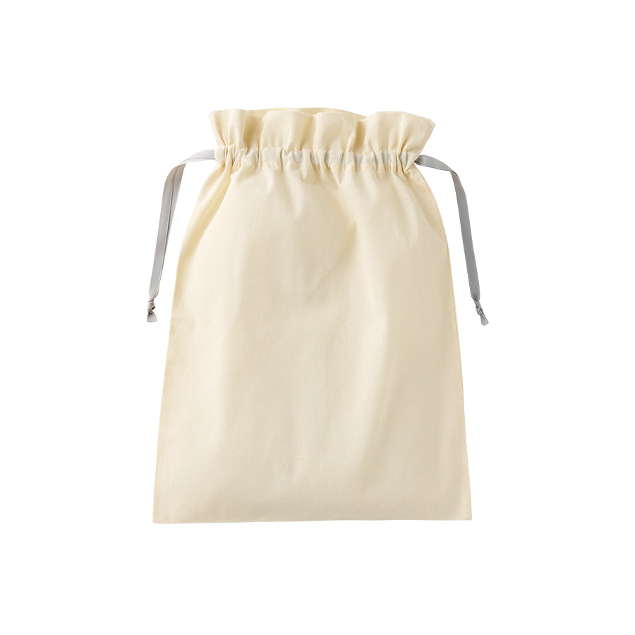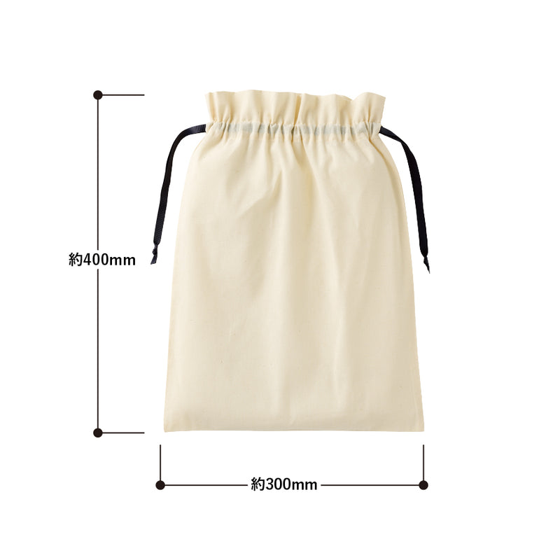 7色展開のカラーリボンがポイントのコットン巾着。ナチュラルカラーのボディはどんなデザインにもマッチし、リボンは長め仕様で華やかな結び目を演出。SS~Lの4サイズ展開で、Mサイズはトラベルポーチや箱入りコスメにも最適。単色からフルカラー印刷まで対応可能で、化粧品ブランドや食品パッケージ、アパレルノベルティにもおすすめです。
