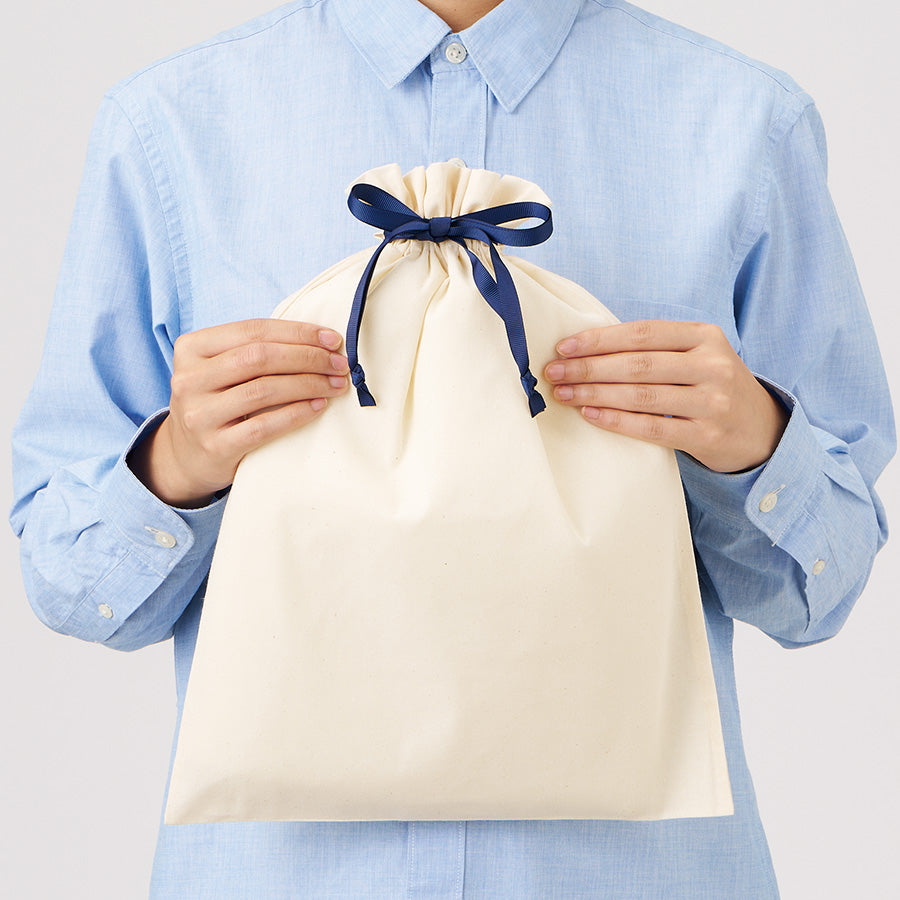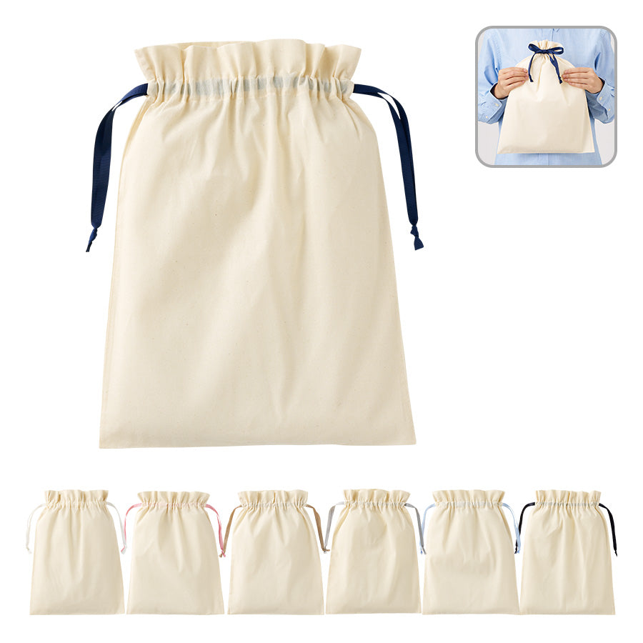 選べる7色リボンで、贈り物を華やかに包むコットン巾着。