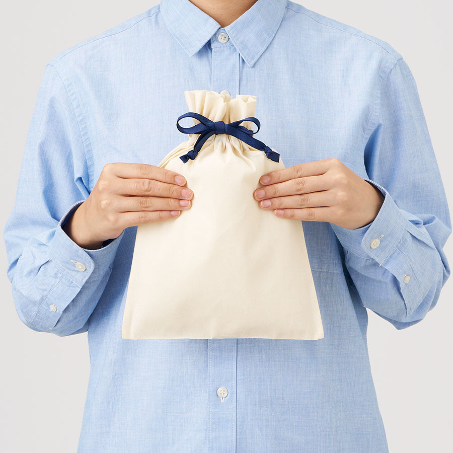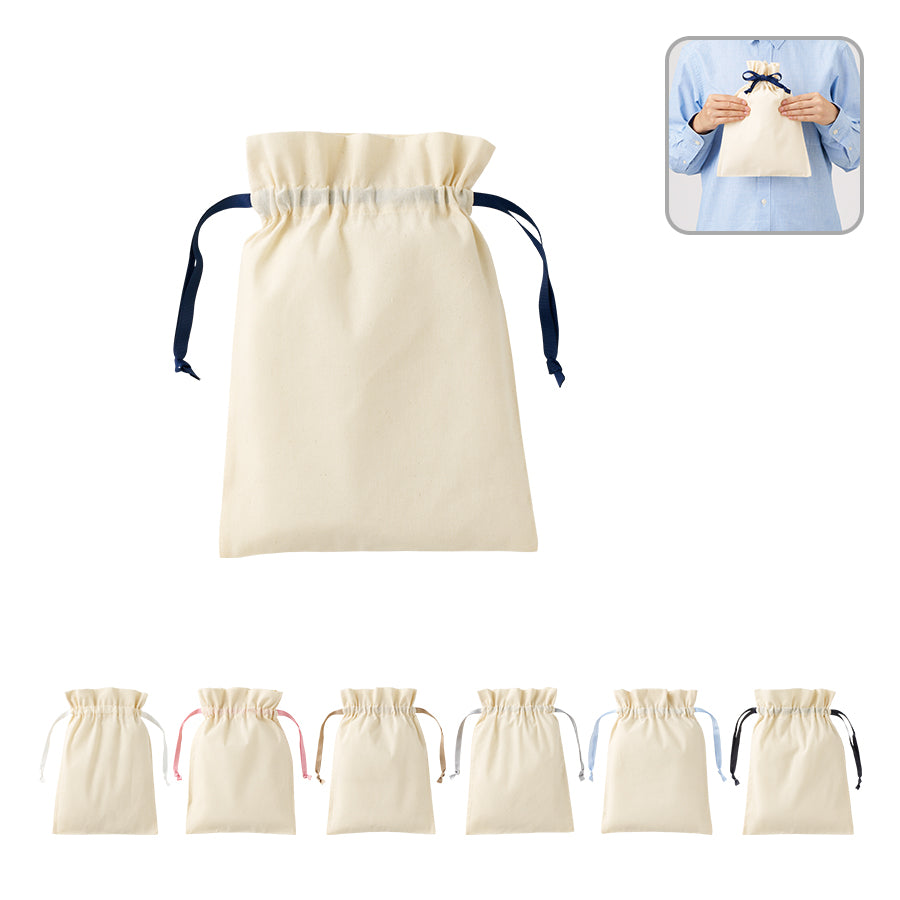 選べる7色リボンで、贈り物を華やかに包むコットン巾着。