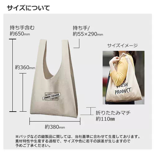 本体/約380×360(持ち手含む650)(mm)・持ち手/約55×290(mm)・折りたたみマチ/約110(mm)