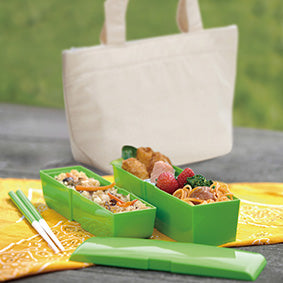 コットン素材の保冷温トートバッグとランチボックスのセットです。