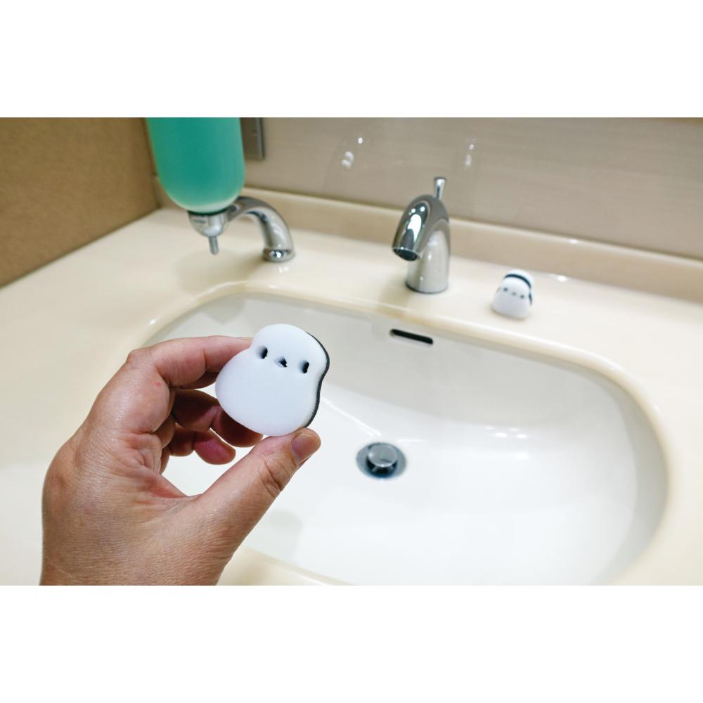 ちょこんと置けて可愛くて、機能的なスポンジです。洗剤なしで水をつけてこするだけで汚れを落とせます。水アカ、茶シブ、手アカ落としに。キッチン、洗面台などの水回りに置いておくとかわいくて便利です。