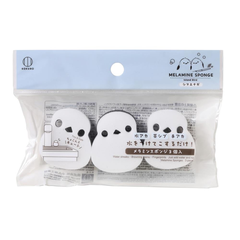 かわいくて人気の小鳥・シマエナガをモチーフにしたメラミンスポンジ。3個入。水をつけてこするだけ。