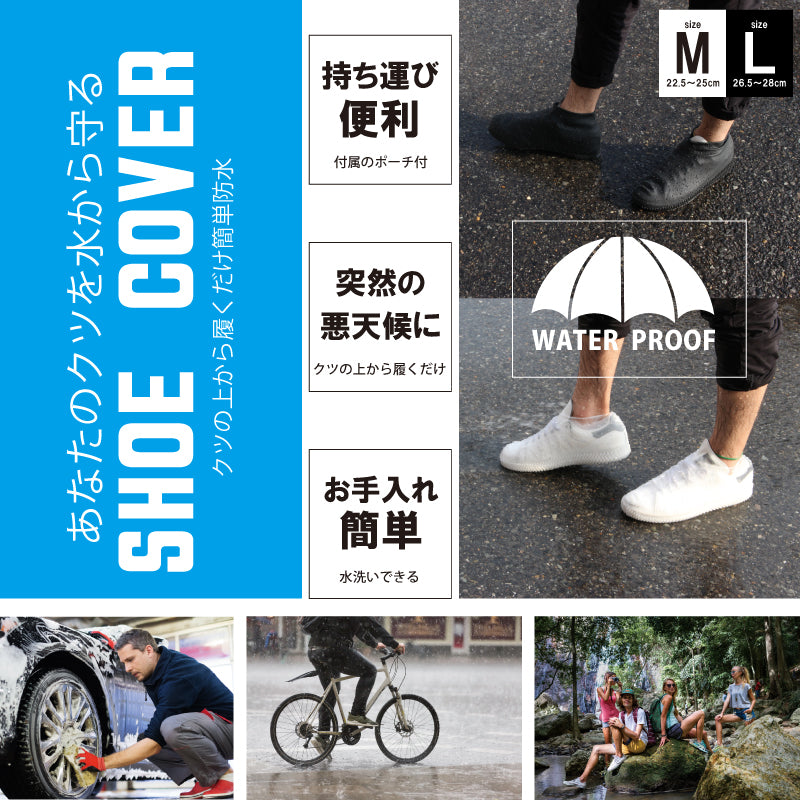 突然の雨や洗車時にクツの上から履くだけ簡単防水できるシューズカバー
