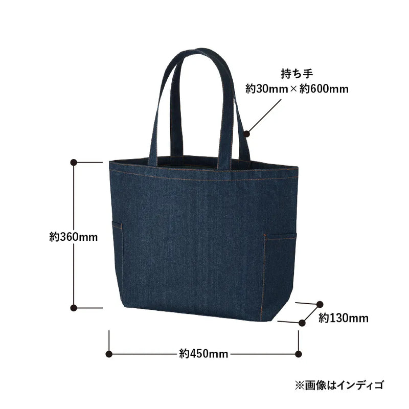 ちょっとしたお出かけに最適なデニム生地のトートバッグで、アパレル利用やアーティスト物販、個人利用など幅広くご利用いただけます。