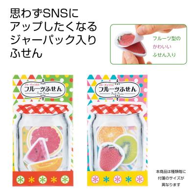 リアルなフルーツプリントのふせんが3種類ずつ入ったジャーパックは、ふせんを使い終わった後も小物入れとして使えます(食品を直接いれないでください)。思わずSNSにアップしたくなる、ビジュアル自慢の商品です♪