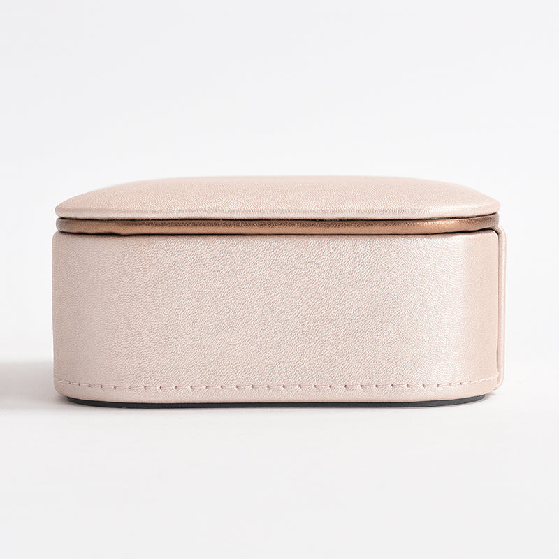 パールピンクにブロンズのバイカラーのフェイクレザーが高級感を演出して大人シックな雰囲気。