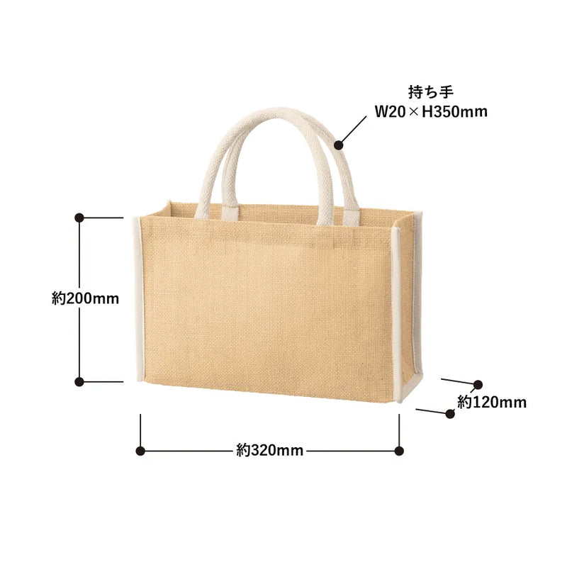 パイピング&ハンドル部分を配色にしたデザインのジュート素材バッグです。