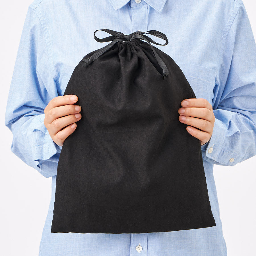 高級感のあるスウェード調素材で、贈り物を格上げする巾着袋。長めのリボンで華やかな結び目を演出でき、ギフトパッケージや秋冬ノベルティに最適。S・M・Lの3サイズ展開で、コスメからアパレルまで幅広く対応。名入れ印刷でブランド価値を高め、特別感のあるオリジナルグッズとしてご提案いただけます。