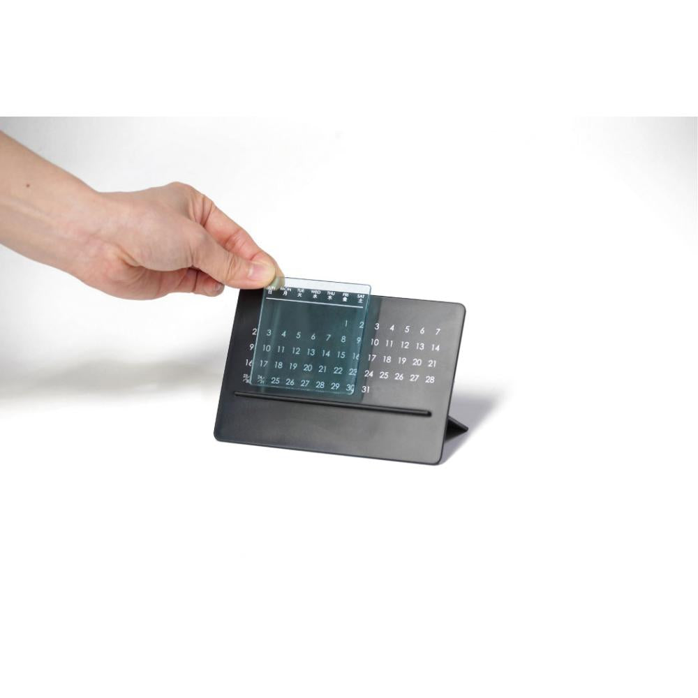 曜日プレートをスライドさせれば何年先でも使えるスタイリッシュな万年カレンダー。