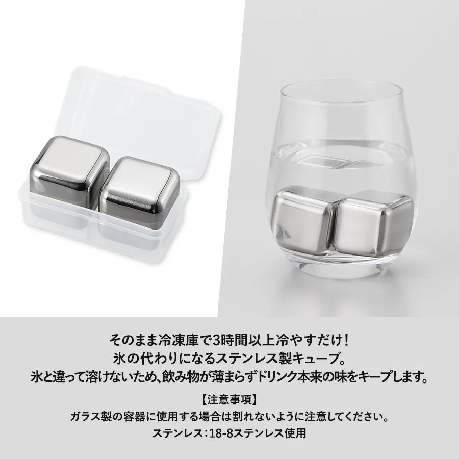 そのまま冷凍庫に入れて冷やすだけで氷の代わりに使用できる、ステンレス製のアイスキューブです。