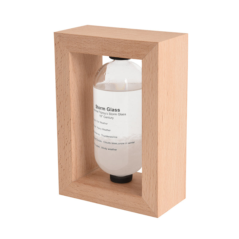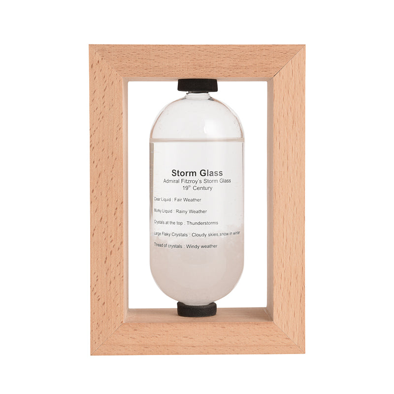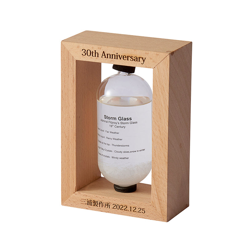 19世紀初頭・ヨーロッパで航海時の気象予測ツールとして使われていた「ストームグラス(気象計)」。天気や気温などによって液体内の結晶の様子が変化すると言われており、結晶がユニークに変化する様子を楽しむことができます。気象状況と液体内部の結晶化の関連性については科学的には解明されておらず、正確な天気を予測する為にはお使い頂けませんが、周りの気象環境の変化によって液体と結晶がユニークに変化しますので、観賞用のインテリアとしてお楽しみ下さい。